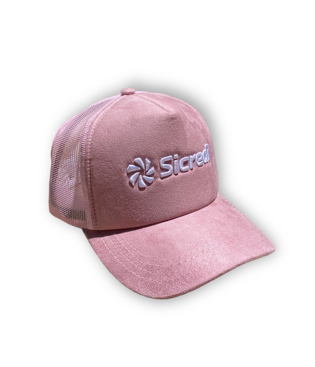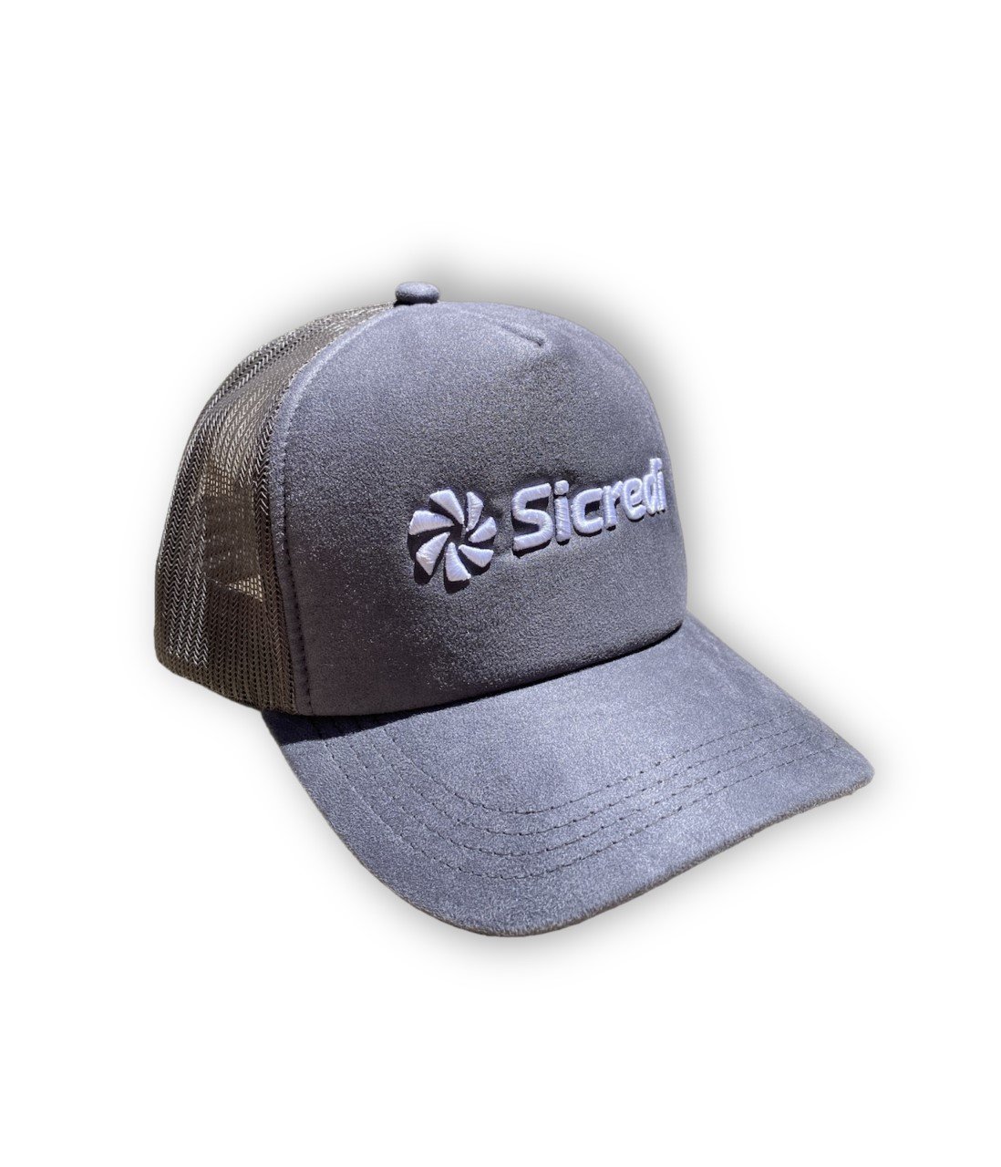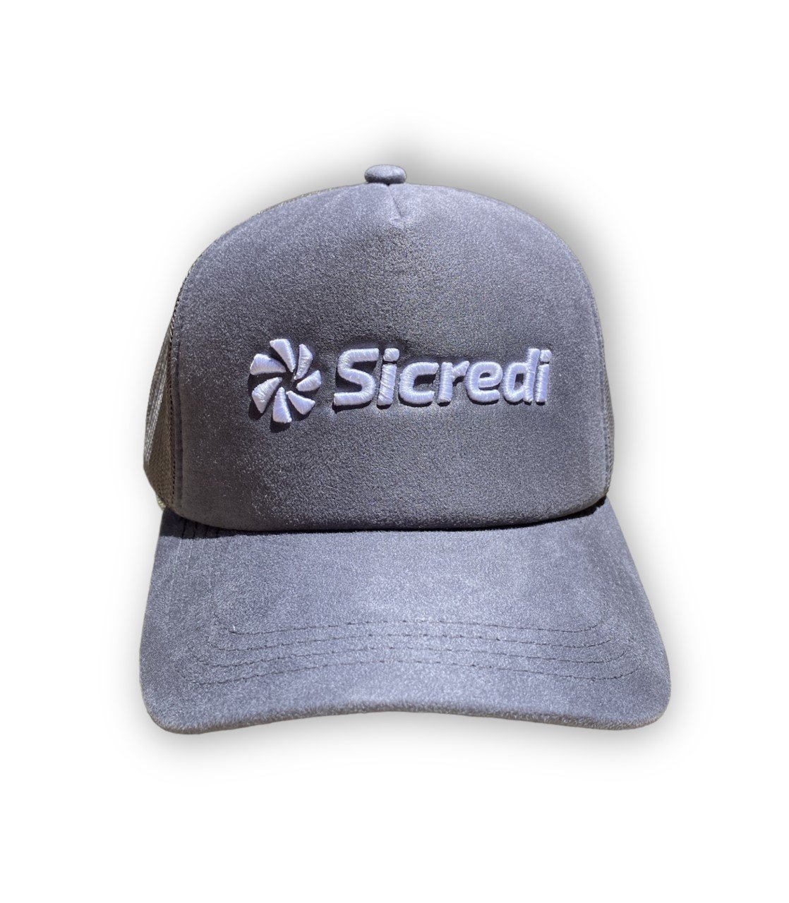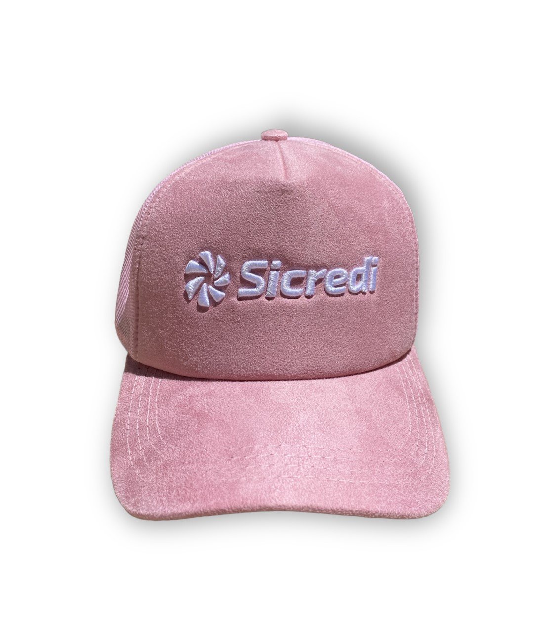 Boné Americano tecido em camurça com telinha e logo em bordado;