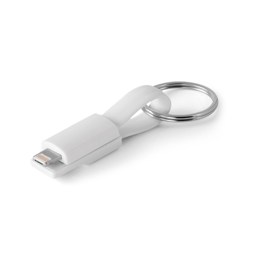 Cabo USB com conetor 2 em 1. Cabo em ABS e PVC, adequado para carregar dispositivos móveis. Compatível com entradas micro USB e sistema operativo iOS. O cabo personalizável contém uma argola chaveiro. 12 x 50 x 10 mm