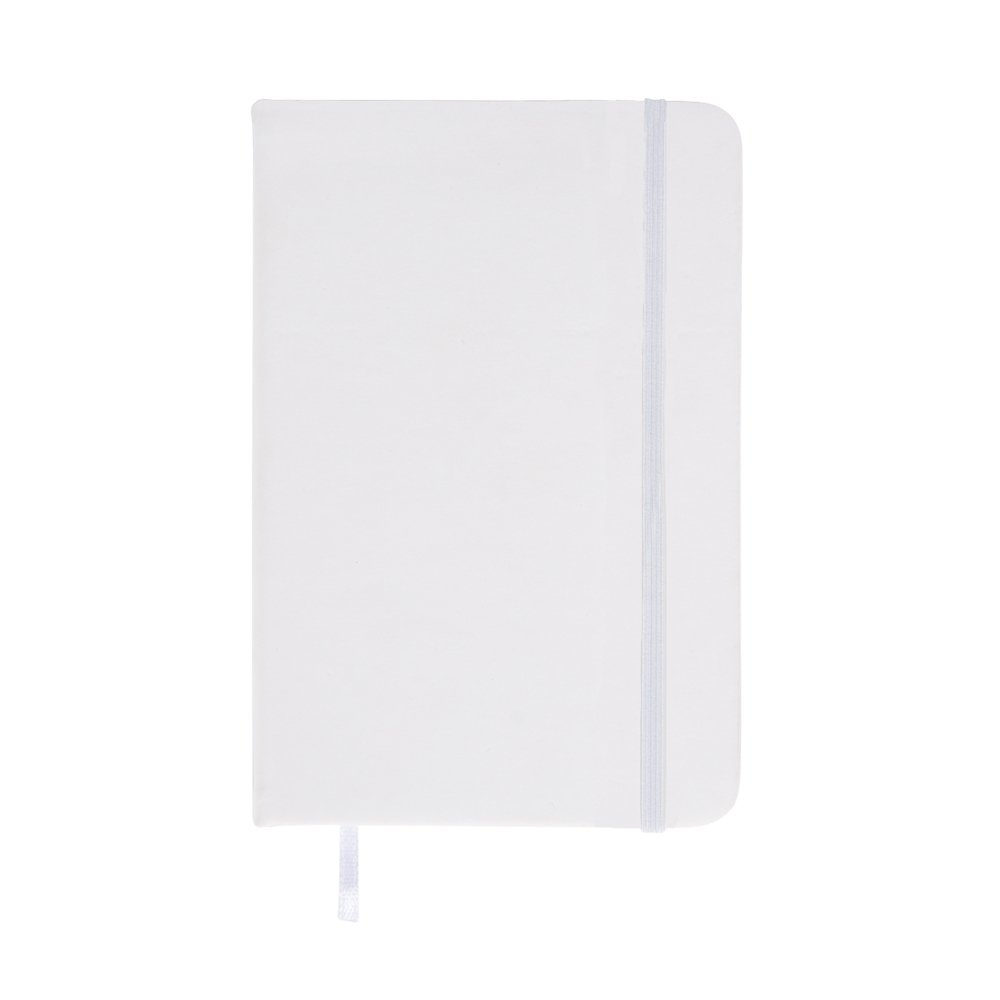 Caderneta emborrachada com elástico para lacre e marcador de página em cetim, contém aproximadamente 76 folhas com pauta na cor marfim.