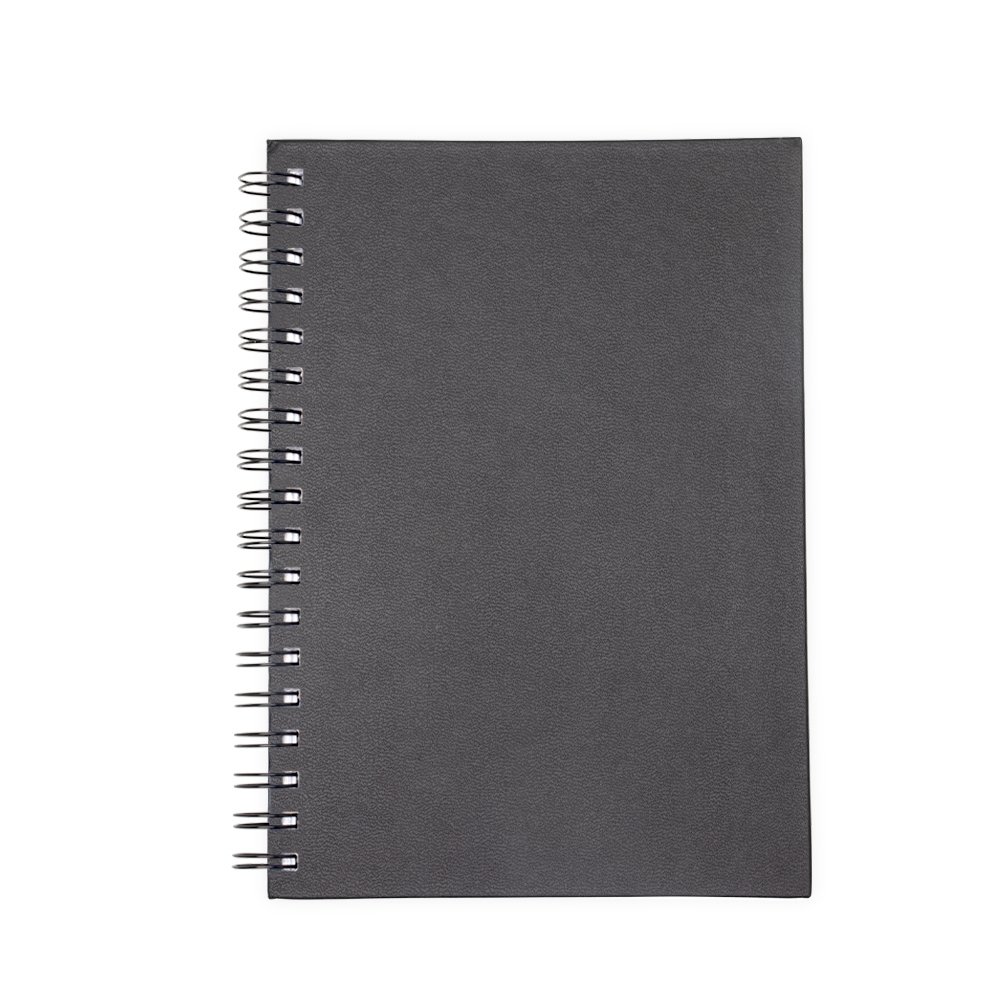Caderno com capa em cromato e wire-o metálico. Possui aproximadamente 86 folhas pautadas e páginas para: dados pessoais, calendários de 2023 à 2025, planejamentos e endereços de contatos.