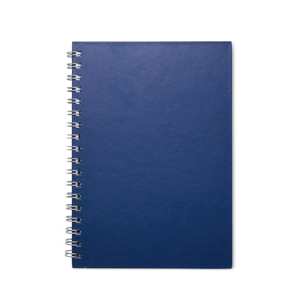 Caderno percalux emborrachado com espiral metálico. Possui aproximadamente 94 folhas brancas pautadas e páginas para: dados pessoais, calendário de 2024 à 2027 e planejamento.