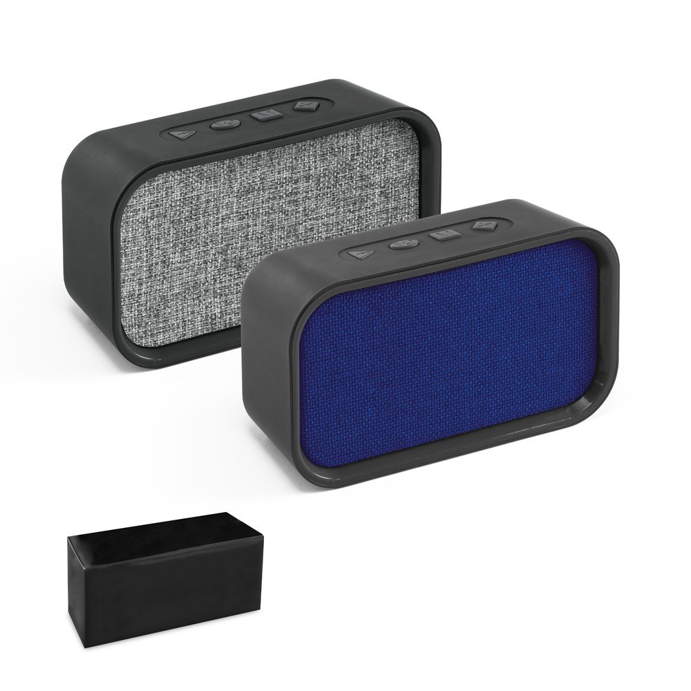 Caixa de som portátil com microfone, em ABS, tecido em poliéster e acabamento emborrachado. Possui transmissão sem fios BT v4’2, potência de 3W/4Ω, ligação stereo 3.5 mm, leitor de cartões TF. A coluna tem autonomia, aproximada, de 2h. Função para atender chamadas, controle de volume, conexão à playlist do dispositivo móvel e rádio FM. Incluso cabo USB para carregar. Fornecida em caixa presente. 140 x 80 x 45 mm | Caixa: 160 x 82 x 60 mm