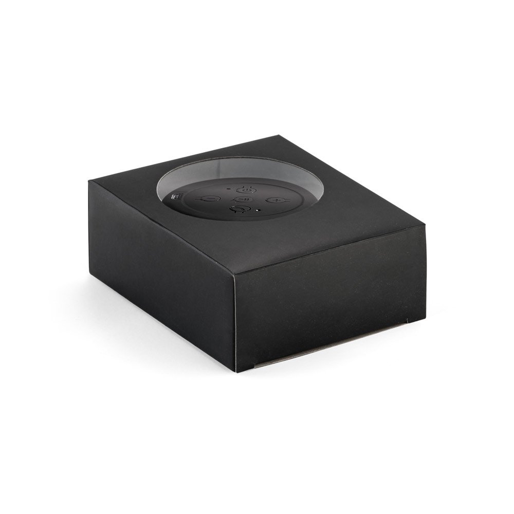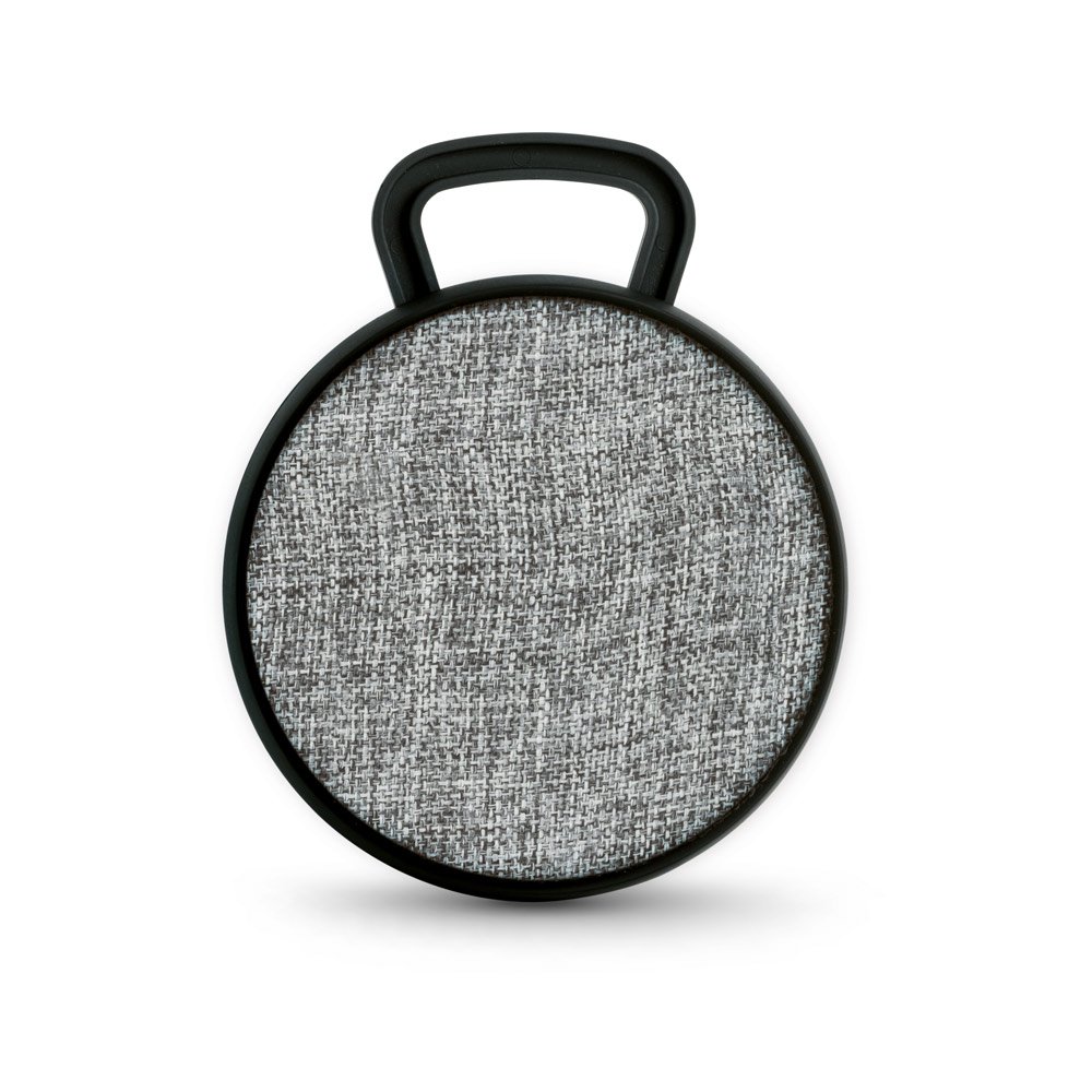 Caixa de som portátil em ABS, tecido em poliéster e acabamento emborrachado. Transmissão sem fios BT v4’2, potência de 3W/4Ω e autonomia, aproximada, de 3 h. Contém um gancho para facilitar o transporte e arrumação. Devido a seu microfone incorporado, permite atender chamadas, controle de volume e conexão à playlist do dispositivo móvel. Incluso cabo para carregamento. Fornecida em caixa presente. ø90 x 40 mm | Caixa: 115 x 95 x 45 mm