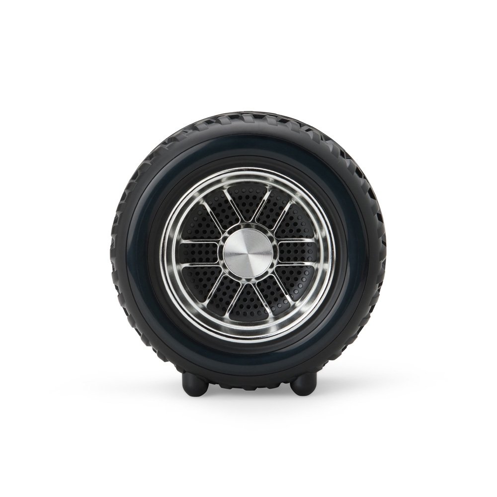 Caixa de som multimídia TWS formato pneu com luminária RGB. Qualidade sonora e conectividade total: compatível com bluetooth, rádio FM, cartão TF (MicroSD) e pen drive. Iluminação dinâmica, são 7 modos de iluminação RGB com movimentos diferentes. Sua tecnologia TWS permite sincronizar duas caixas de som em uma, criando uma experiência imersiva com potência excepcional. Fabricada em plástico com plaquinha metálica personalizável, seu design robusto contém pés e base antideslizantes para maior estabilidade em qualquer superfície. Acompanha cabo USB Tipo-C.