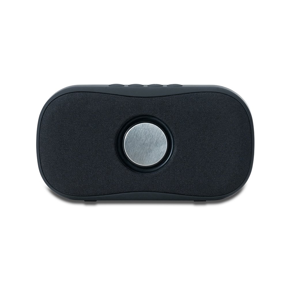Caixa de som plástica multimídia com efeito visual, são geradas vibrações no alto-falante ao reproduzir músicas com batidas graves. Operante nos modos: bluetooth, rádio FM, cartão microSD e atendimento de chamadas. Contém plaquinha metálica fixa na área frontal e base com borrachas antiderrapantes. Acompanha cabo USB.