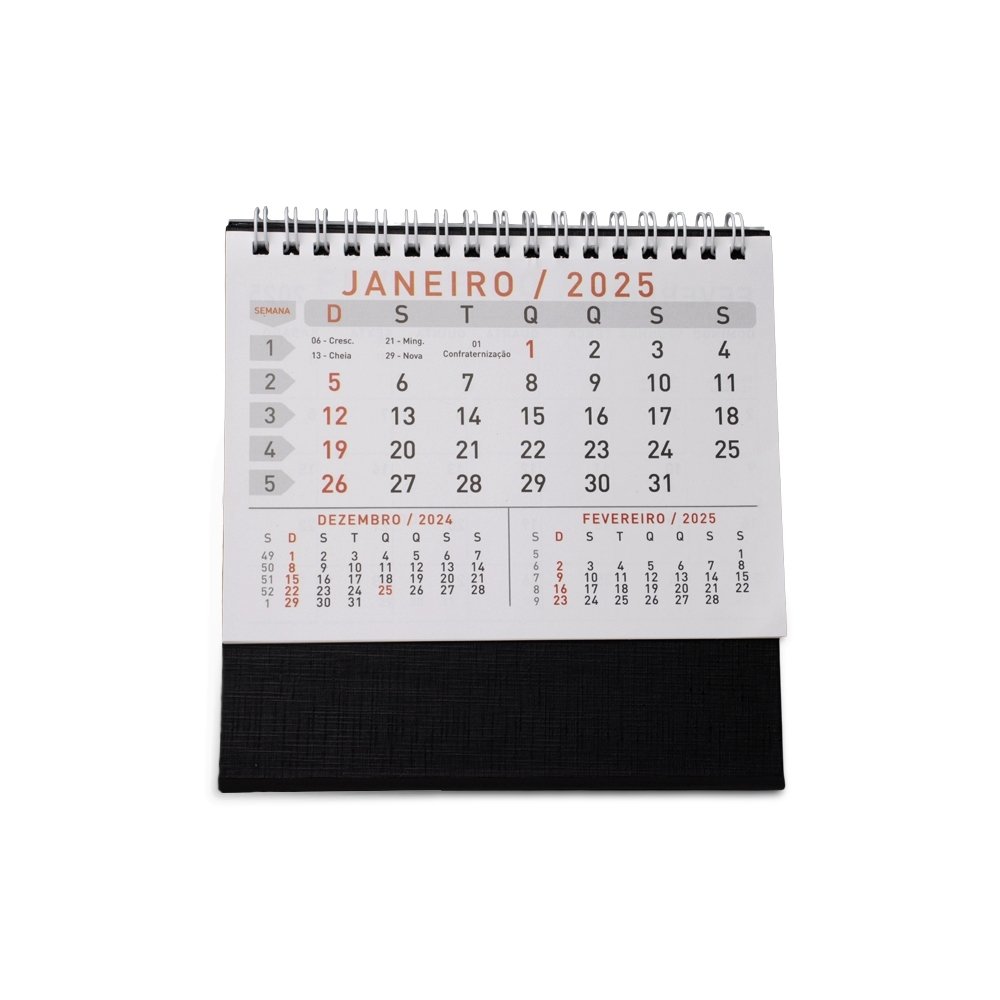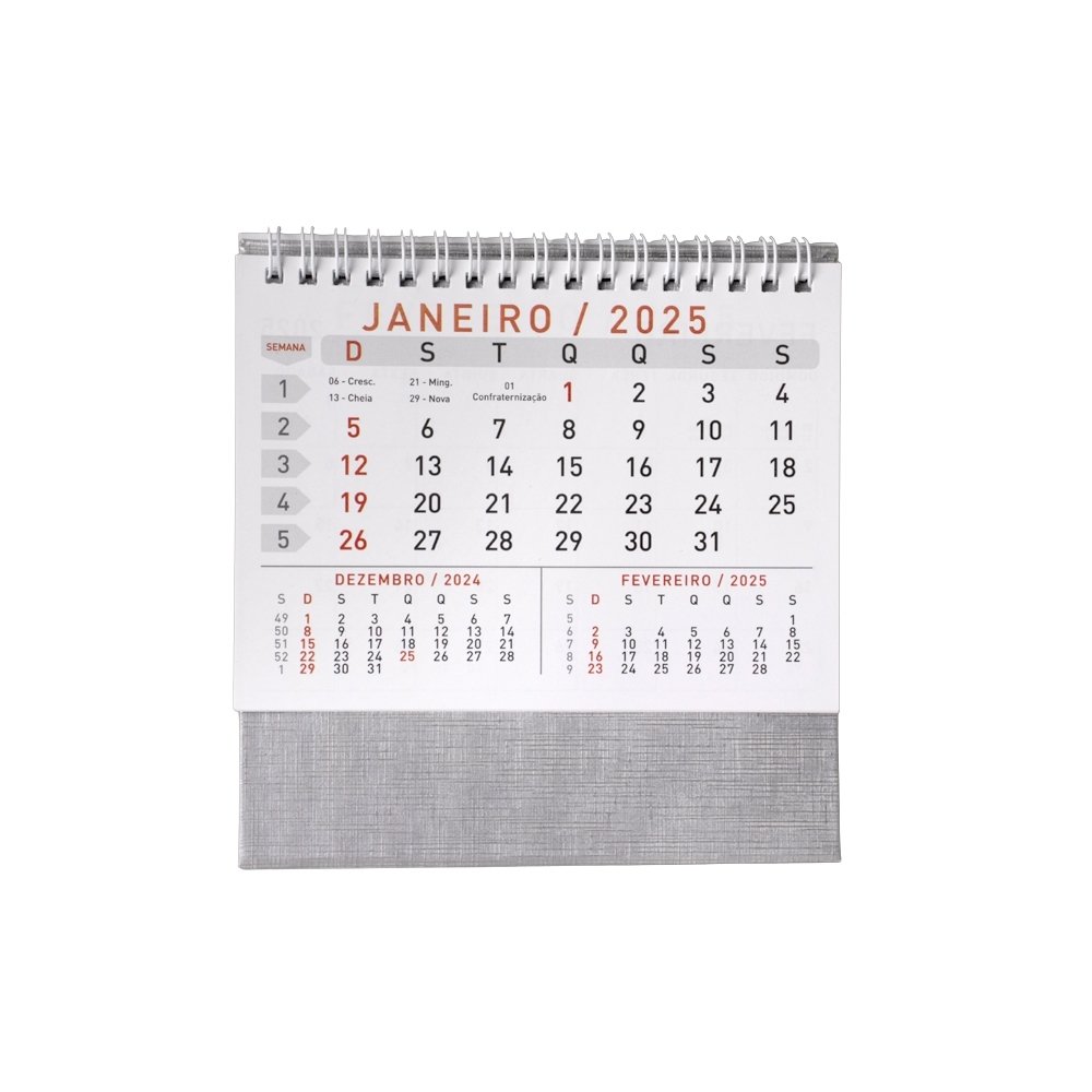Calendário de mesa 2026 em papel couche 115g, base percalux.