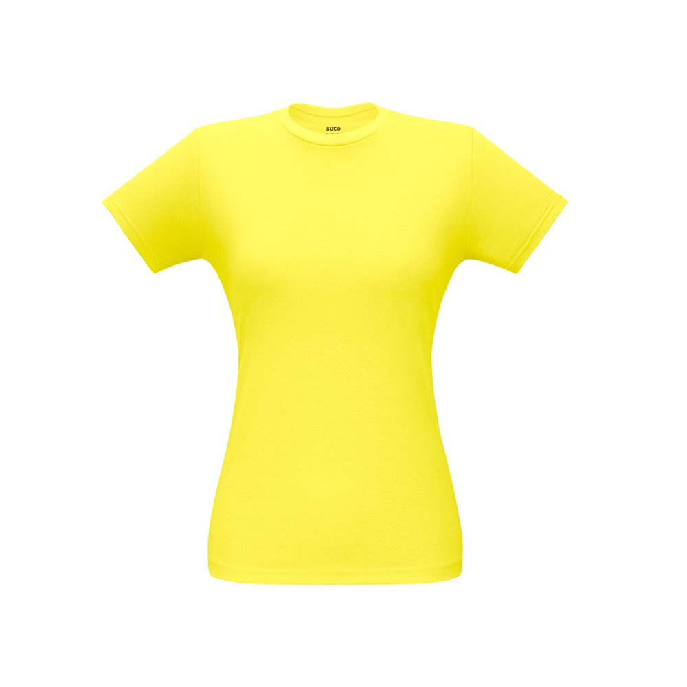 Camiseta feminina de corte cinturado em malha 100% algodão (135 g/m2) com fio 30/1 misto. Com gola em ribana 1×1 com fita de reforço e com costura dupla nas mangas, barra de fundo e laterais. Produto contém certificação ABVTEX . Tamanhos: P, M, G, GG