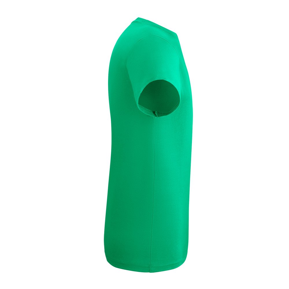 Camiseta unissex de corte regular em malha 100% algodão (165 g/m2) com fio 30/1 misto. Com gola em ribana 1.5×1.5 com fita de reforço e com costura dupla nas mangas, barra de fundo e laterais. Produto contém certificação ABVTEX . Tamanhos: P, M, G, GG, XGG