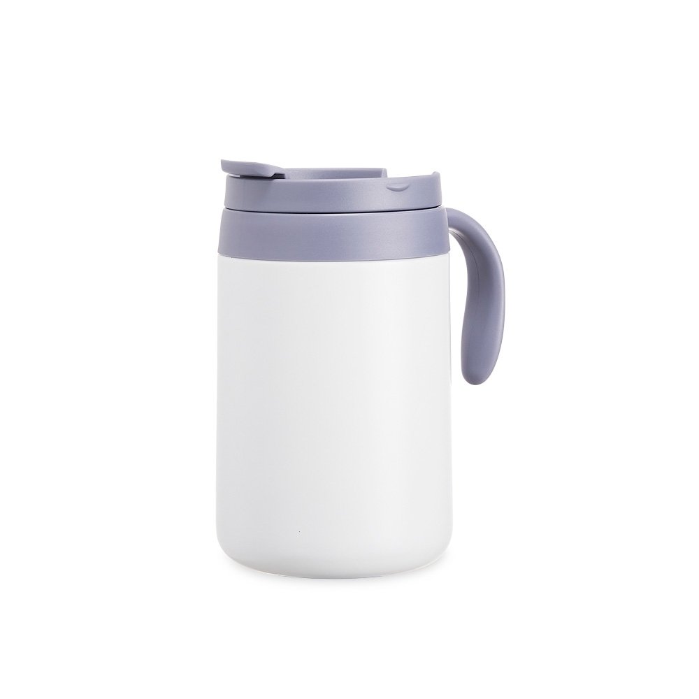 Caneca térmica feita em inox 304 com parede dupla, capacidade de 500ml. Contém tampa com acesso para o bocal, alça plástica e base antiderrapante.