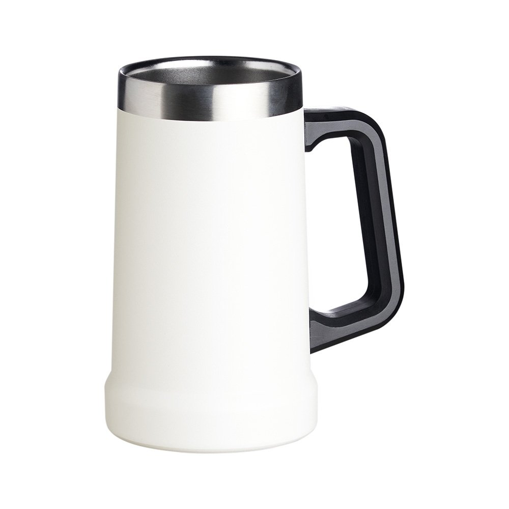 Caneca térmica de inox com pegador plástico, capacidade de 700ml.