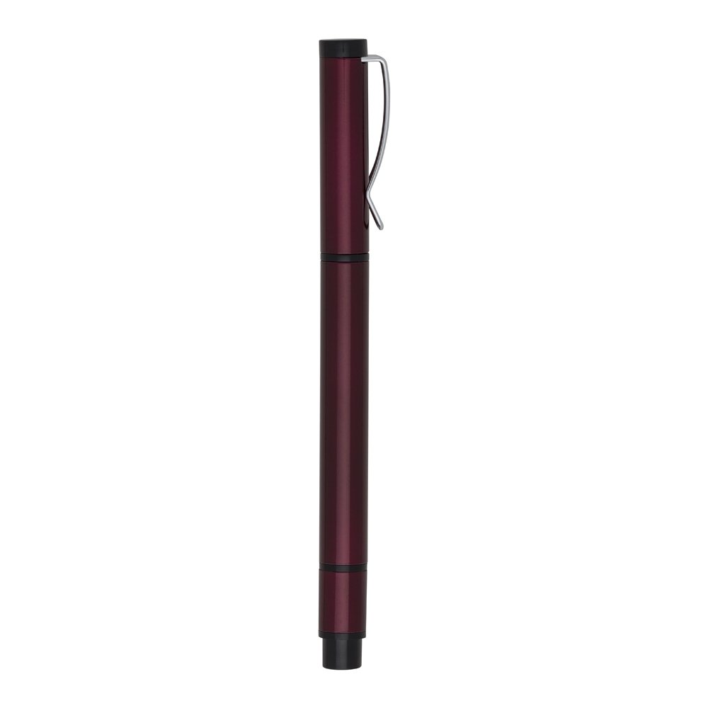 Caneta metálica com marca texto e carga esferográfica azul, ambas com tampas protetoras.