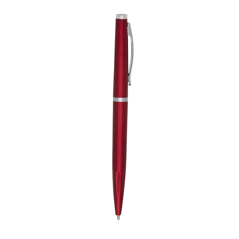 Caneta plástica com carga esferográfica azul 1.0mm e acionamento por rotação.