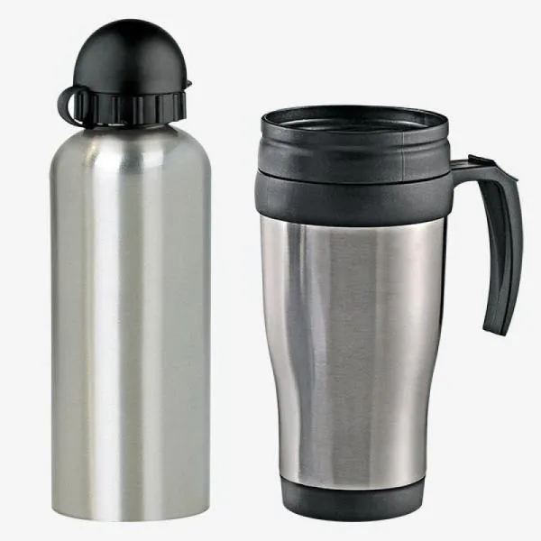Conj. de squeeze e caneca em aço inox 600/410 ml- 2 pçs