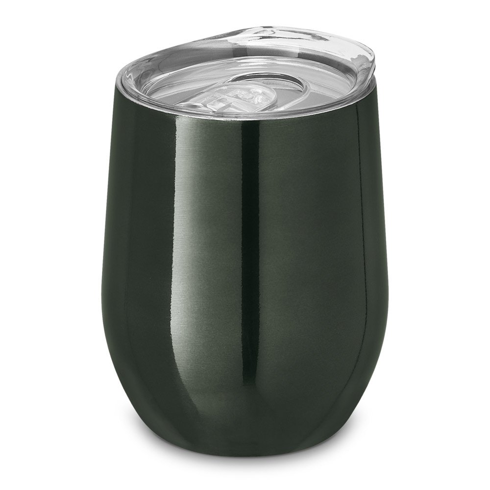 Copo de viagem em aço inox, térmico com parede dupla isolada a vácuo e tampa deslizante. Capacidade até 400 mL. Preserva as bebidas quentes por 6h e frias por 12h. Fornecida em caixa presente. Certificação EU Food Grade. 88 x 112 mm