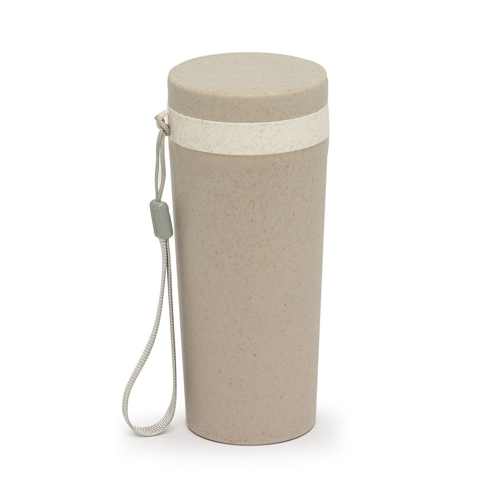 Copo isotérmico fibra de bambu 350ml com parede dupla e alça. Copo produzido em Polipropileno livre de BPA, possui uma tampa de vedação rosqueável e alça de nylon (removível) para transporte. Conserva a temperatura interna durante um período de 1 à 2 horas, mas não dispõe de isolamento térmico. O copo pode ser levado a lava-louças, geladeiras e micro-ondas.