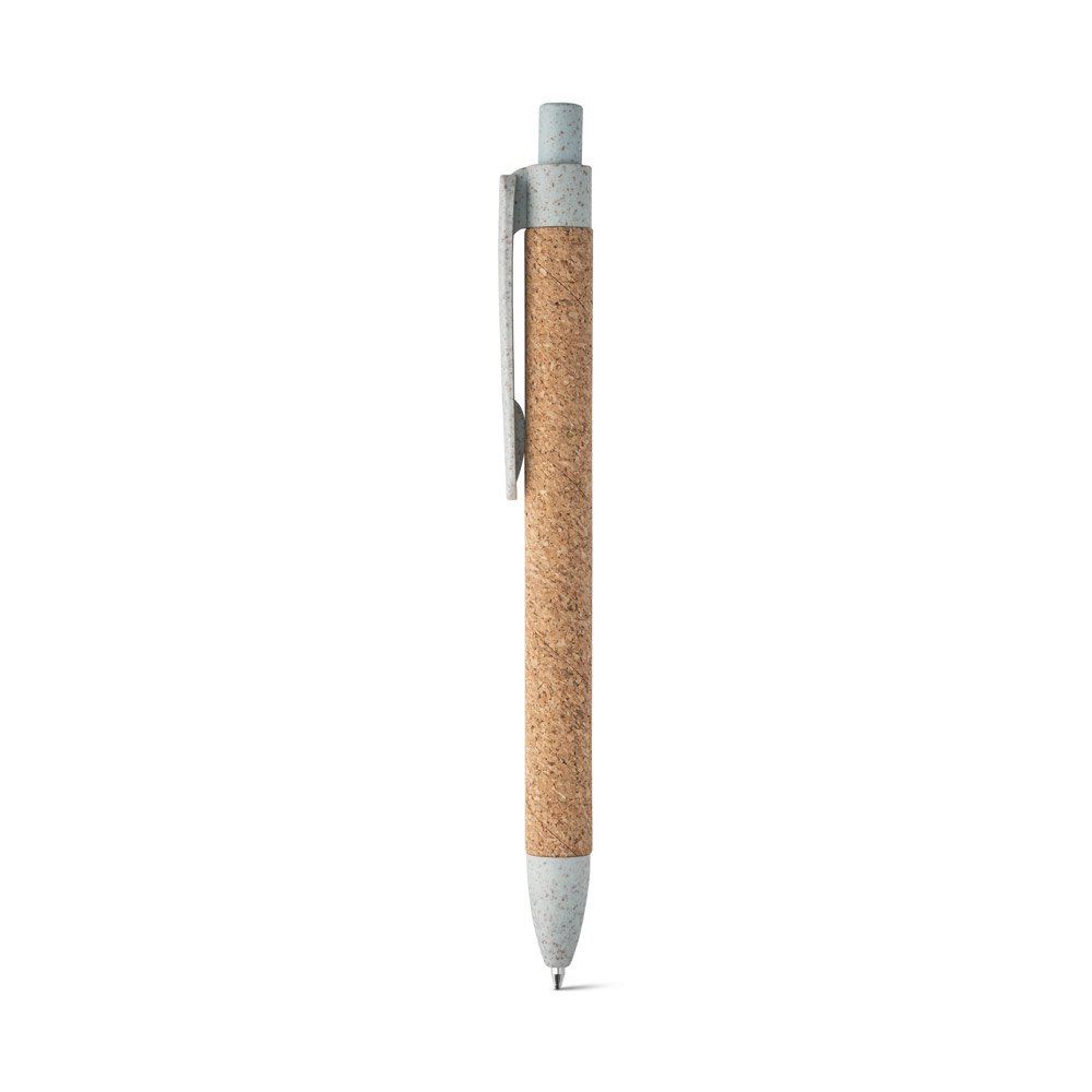 Esferográfica em cortiça, fibra de palha de trigo e PP com escrita em azul