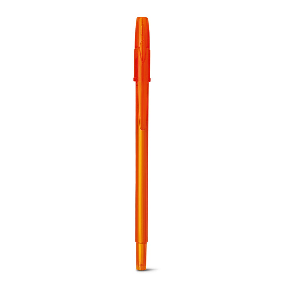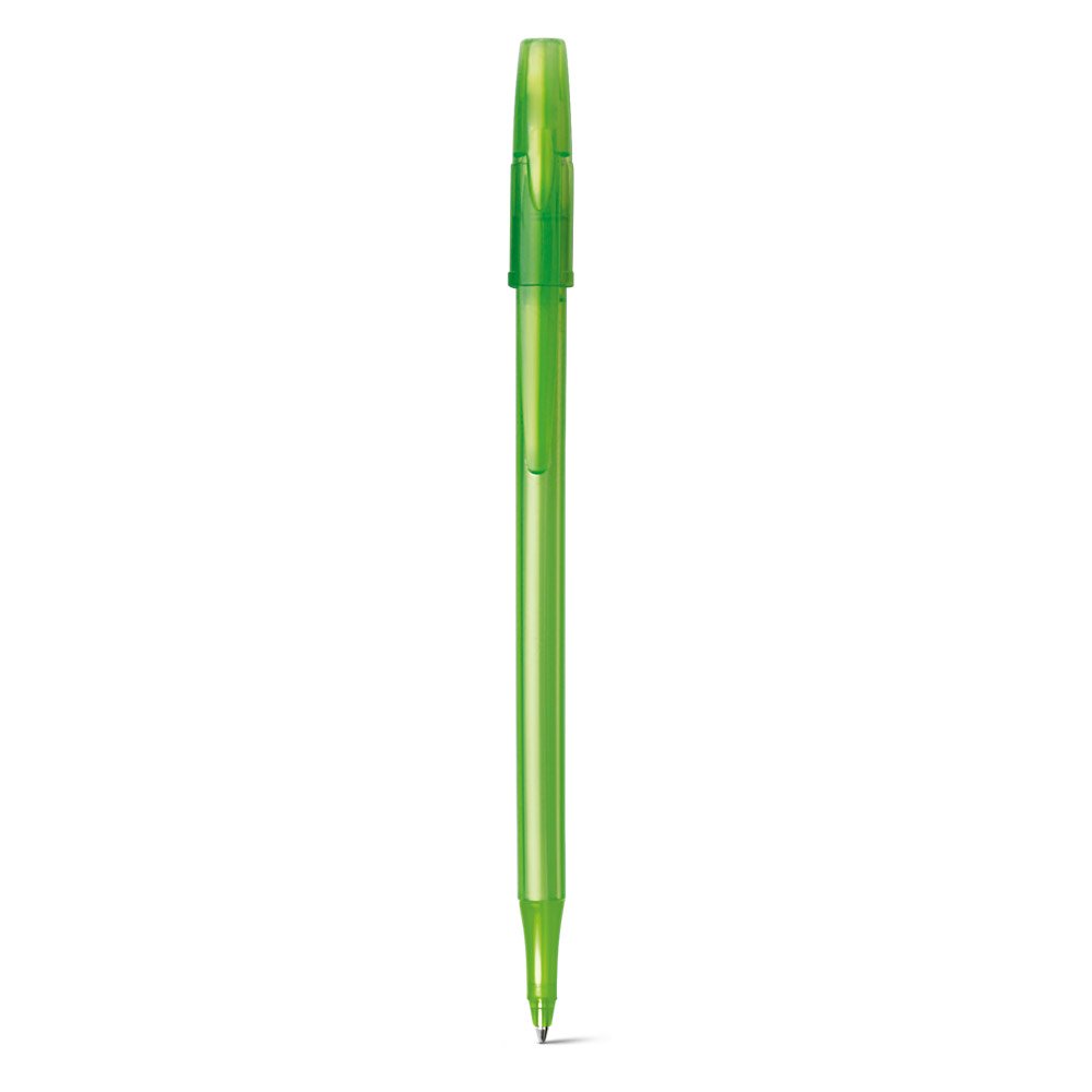 Esferográfica em PP com acabamento frost. Escrita em azul até 1.5 km. Produto certificado de acordo com a portaria Inmetro nº423 de 8/out/2021. ø8 x 151 mm