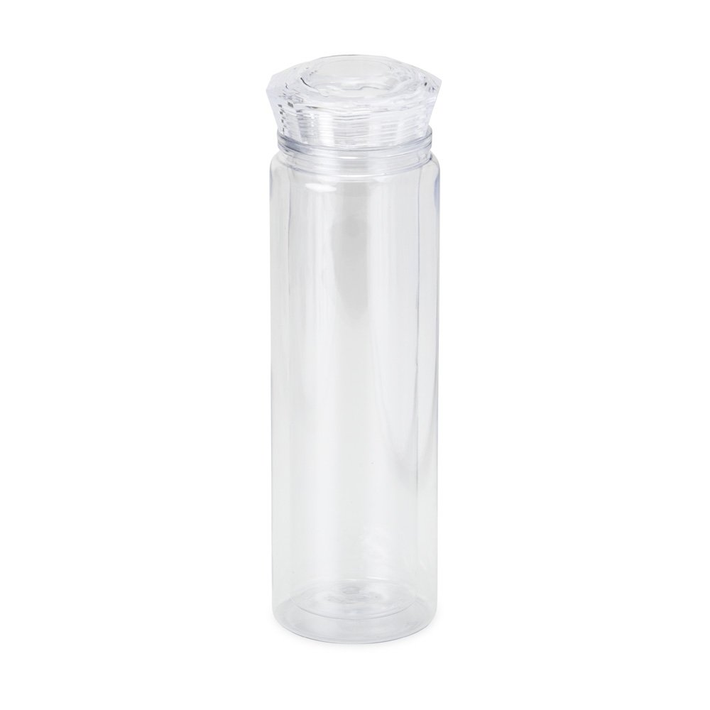 Garrafa 500ml em plástico com tampa rosqueável em formato de diamante.