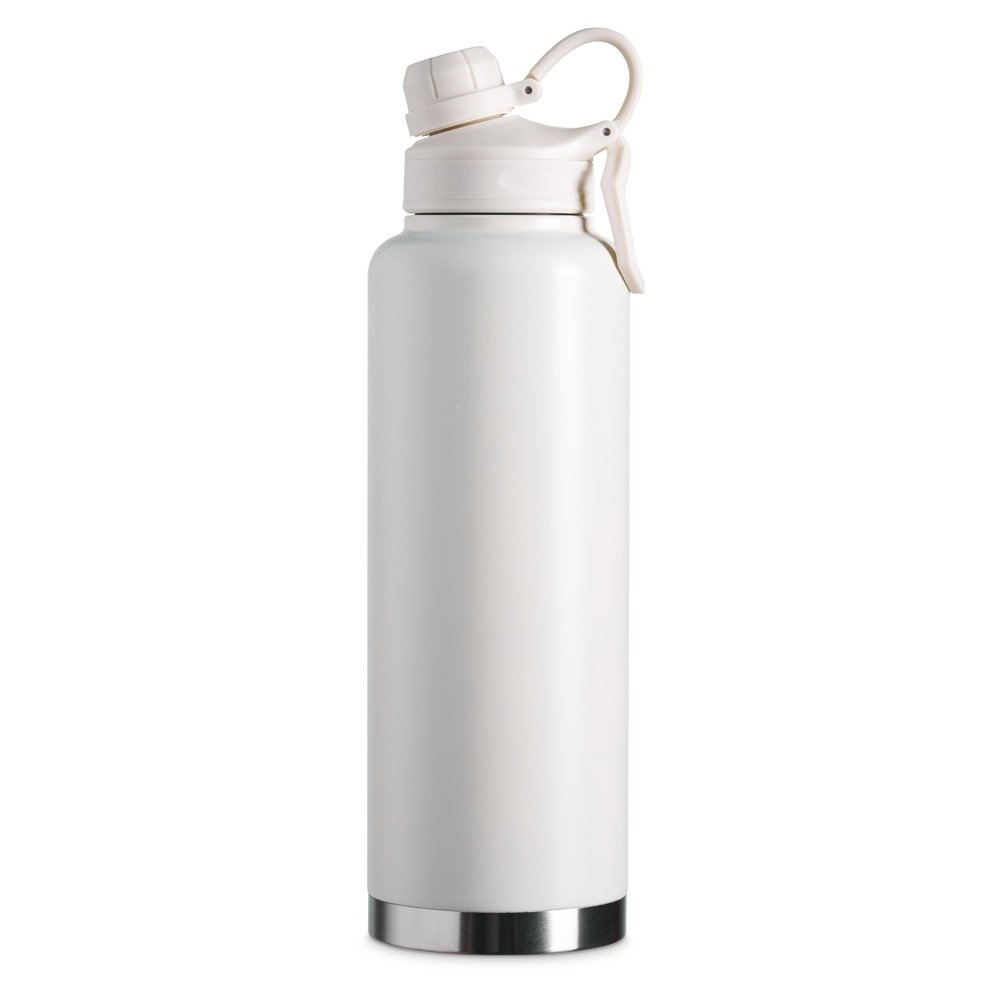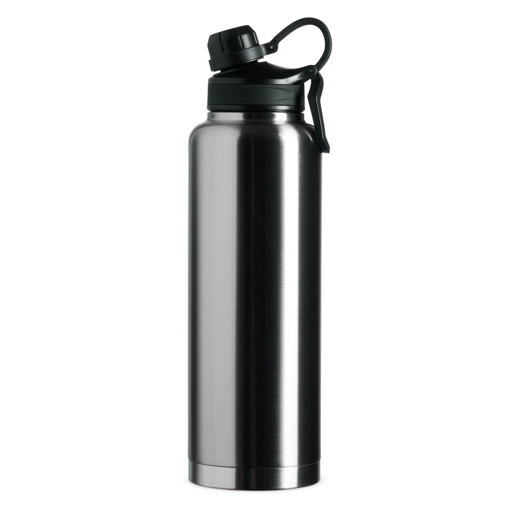Garrafa Térmica em inox 304 de parede dupla com capacidade de 1,5 litros. Possui tampa com alça para transporte e tampa rosqueável de proteção para o bocal.