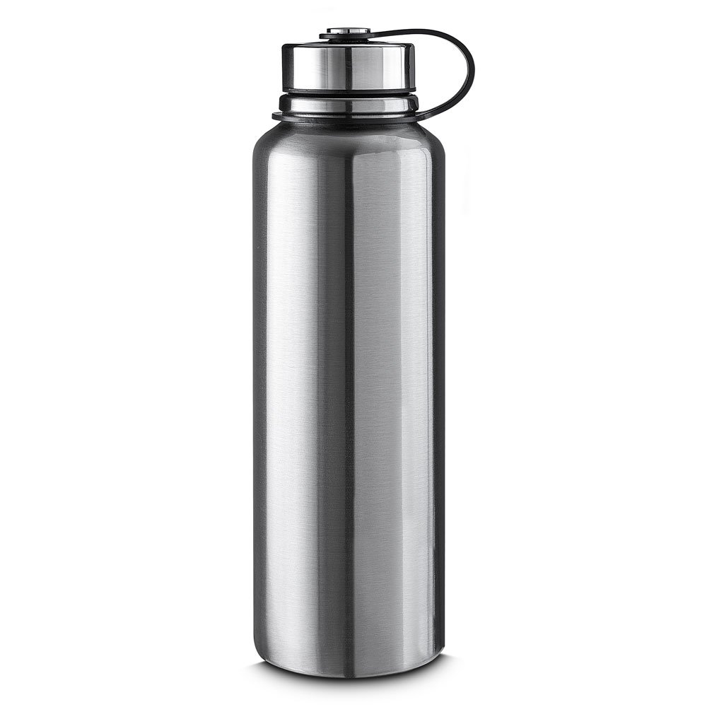 Garrafa térmica com infusor de bebidas, feita em inox 304 com capacidade de 1 litro. Contém base antiderrapante e alça de silicone acoplada na tampa.