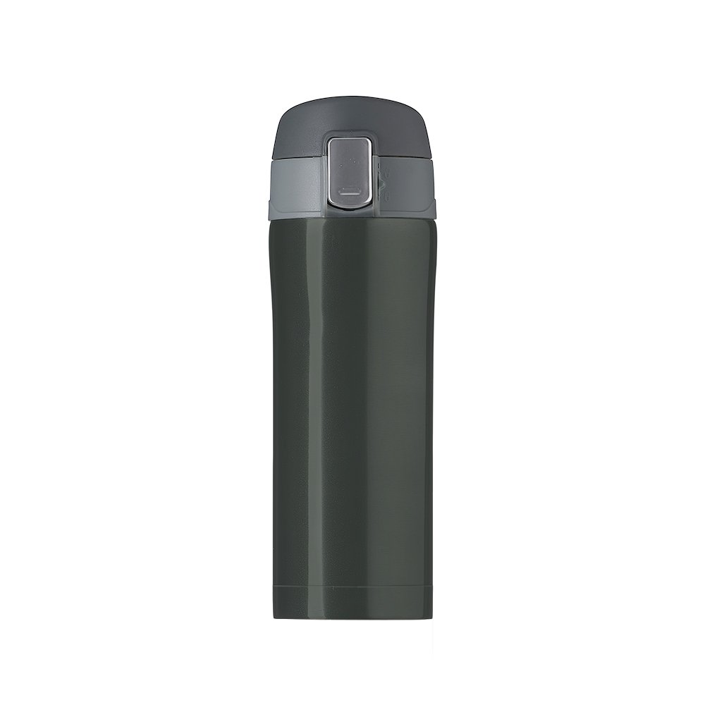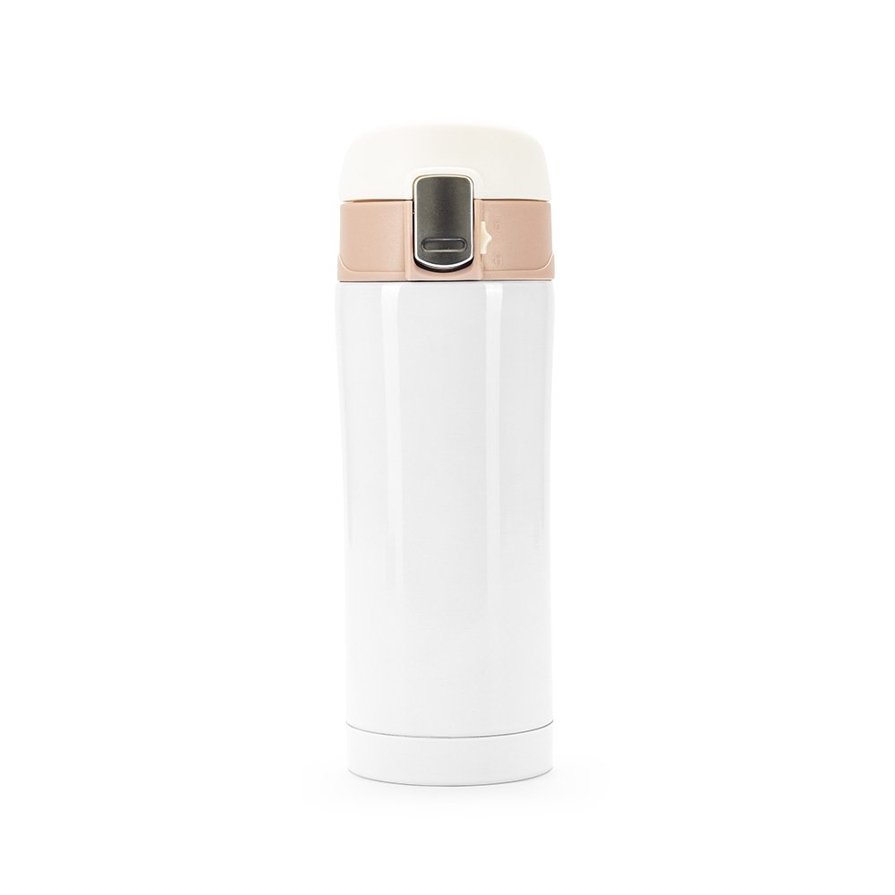 Garrafa térmica 320ml colorida com sistema de trava. Material metálico com revestimento interno em inox, possui tampa plástica fosca com borracha interna para vedação evitando o vazamento de líquido e prezando sua temperatura possui botão central para abertura e trava lateral(basta seguir a orientação dos desenhos de cadeados simulando o travamento/destravamento da tampa).
