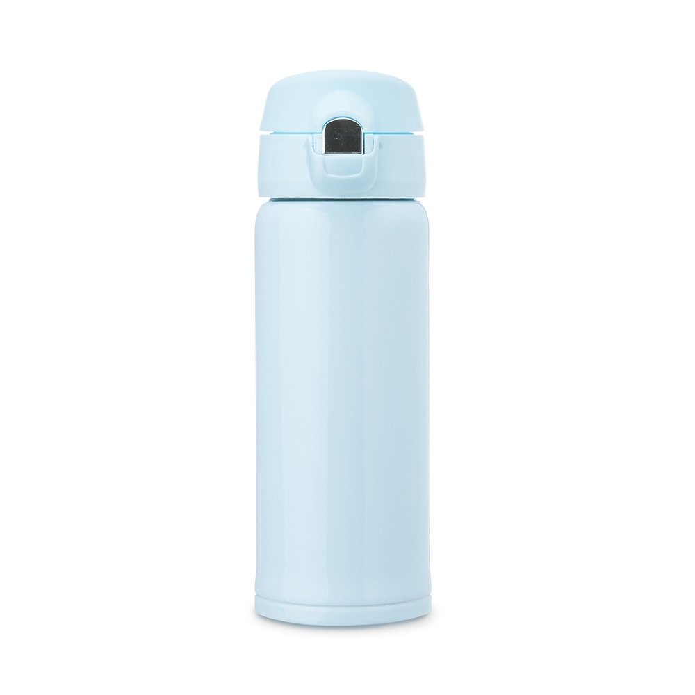 Garrafa térmica parede dupla feita inox 304, capacidade de 400ml. Tampa de polipropileno com botão de acionamento e trava de segurança.