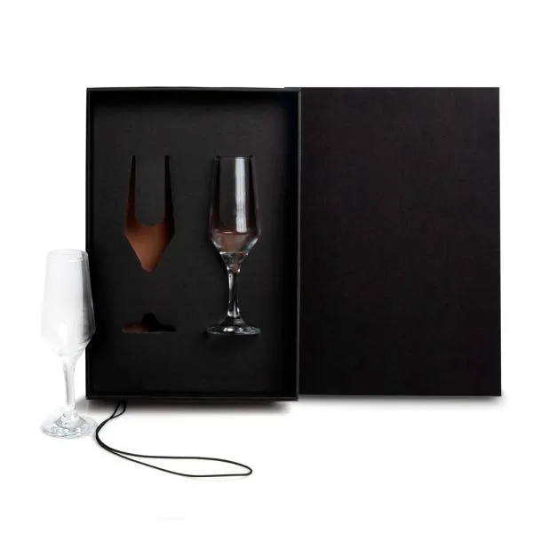 Jogo com 2 taças de vidro para Champagne. Capacidade: 186ml