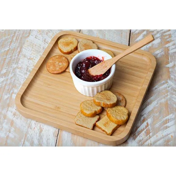 Kit para petisco. Conta com petisqueira, espátula em bambu e ramekin em porcelana.