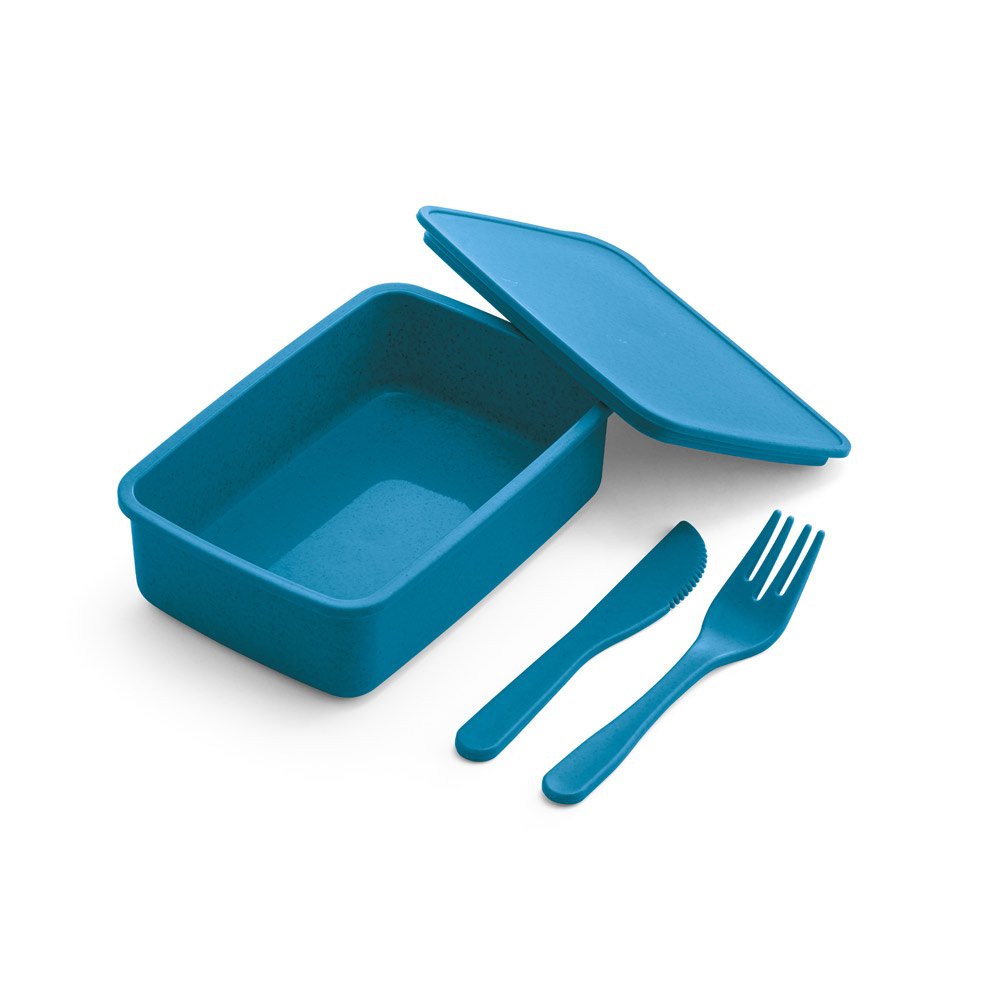 Marmita hermética em fibra de bambu (60%) e PP (40%) com compartimento com capacidade até 600 mL. Contém banda elástica com suporte para 2 talheres, inclusos: garfo e faca. Apto para micro-ondas (retirar a tampa). Certificação EU Food Grade. 165 x 111 x 50 mm