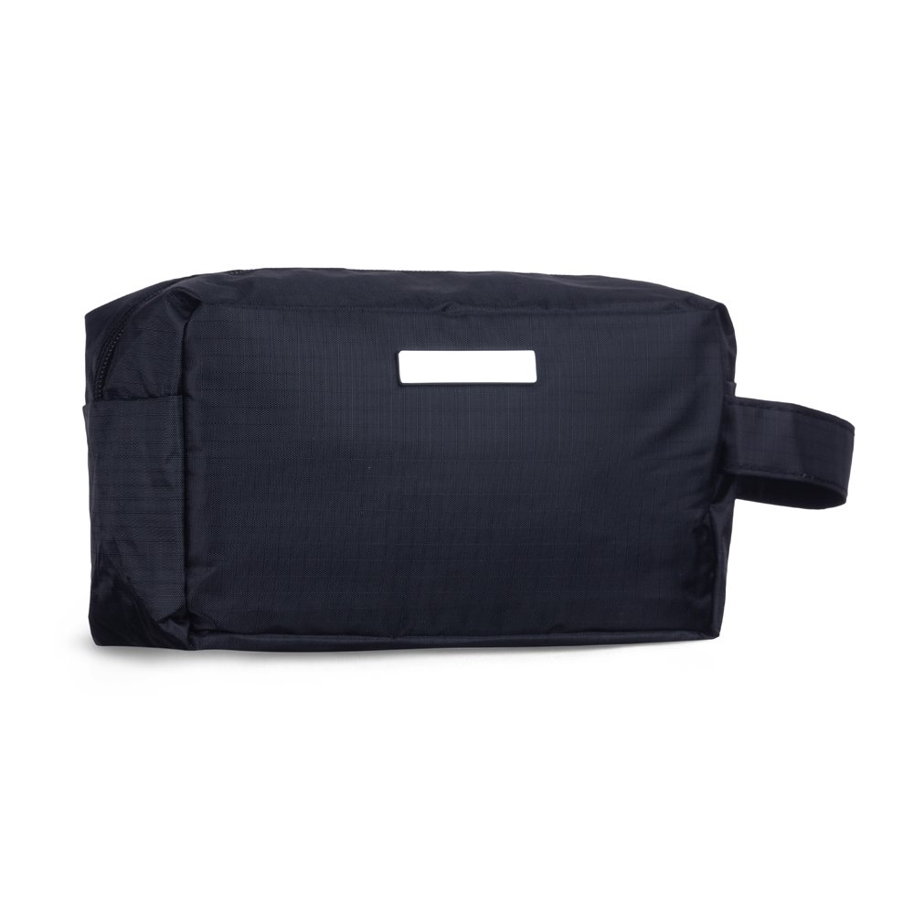 Nécessaire de pvc resistente à água com plaquinha metálica fixa.