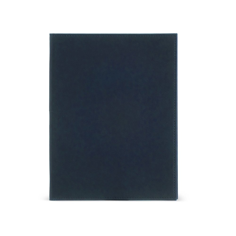 Pasta convenção de couro sintético, possui porta caneta, compartimento para arquivar documentos, dois bolsos para cartões e um bloco com aproximadamente 25 folhas brancas não pautadas.
