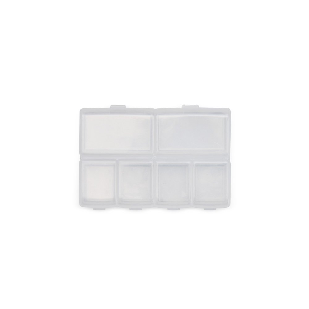 Um porta comprimidos na medida certa para dar mais possibilidades de organização em uma rotina de cuidados. Feito plástico, possui ao todo seis compartimentos, sendo dois maiores com capacidade de até 15 ml e outros quatro menores com 10 ml ao todo. Tudo isso garante mais opções de arranjos para armazenar comprimidos de maneira ordenada e eficiente.