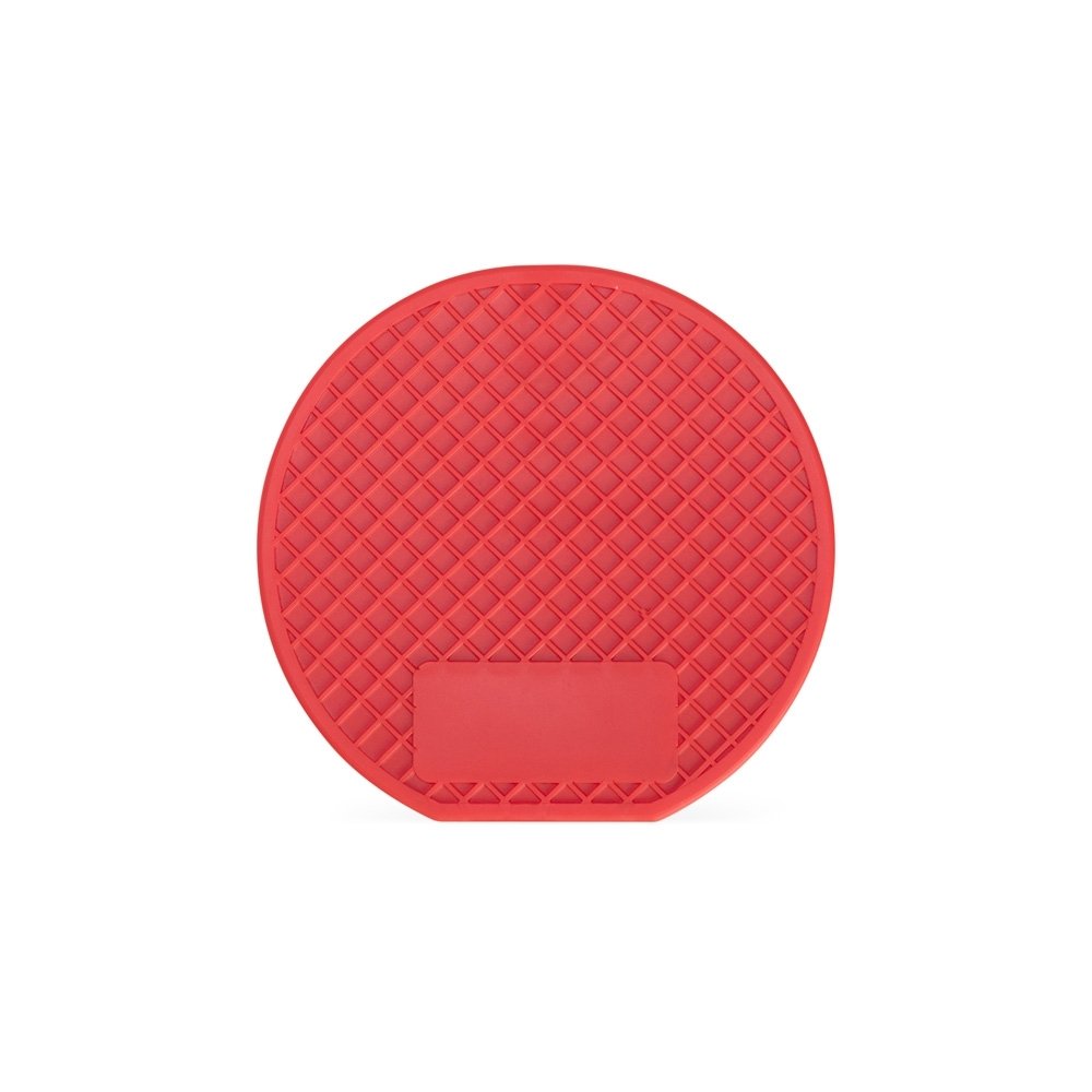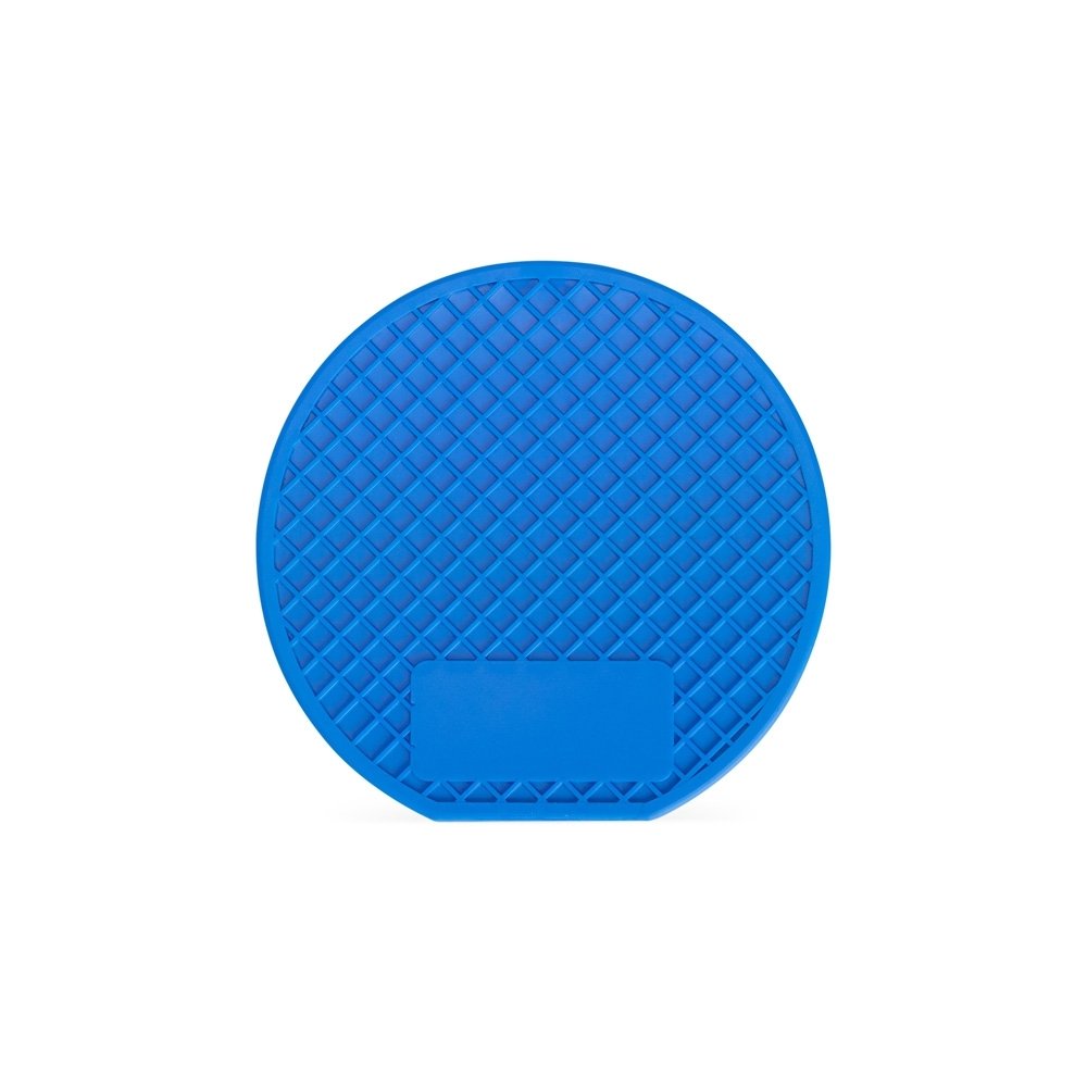 Um porta-copos feito em PVC com ranhuras antiderrapantes, tornando-o uma opção versátil para proteger superfícies planas contra manchas ou derramamento de líquidos.
