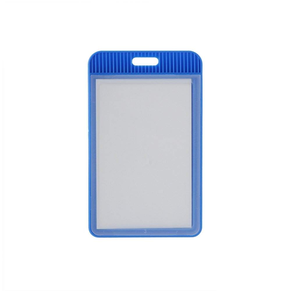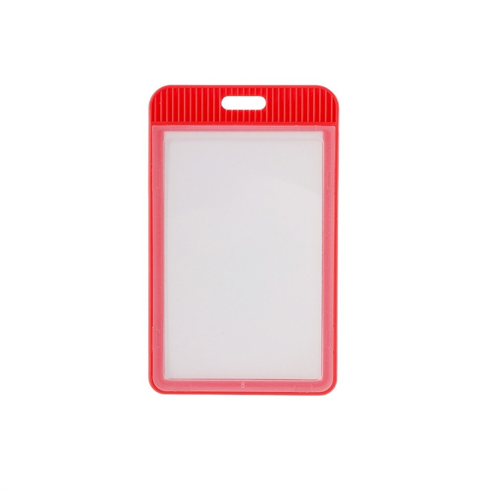 Porta crachá ou porta credencial em plástico resistente. Suporte com visor transparente removível e abertura superior para prender o cordão.
