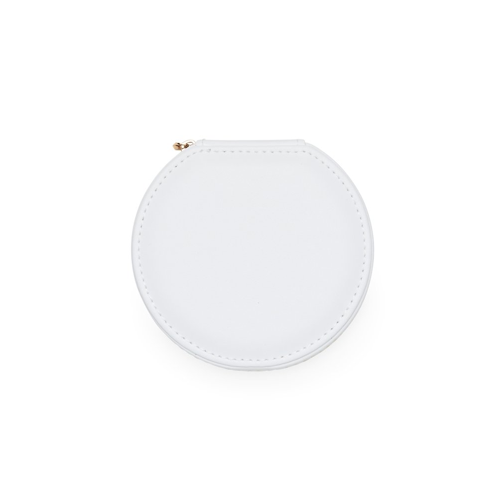 Porta-joias de couro sintético com revestimento aveludado. Possui compartimentos internos para anéis, brincos, pulseiras e colares.