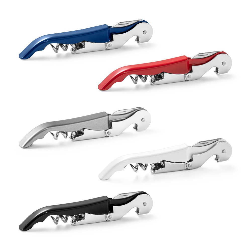 Saca-rolhas em metal e PP com abridor de garrafas e canivete de sommelier. Espiral em aço inox. 121 x 20 x 12 mm
