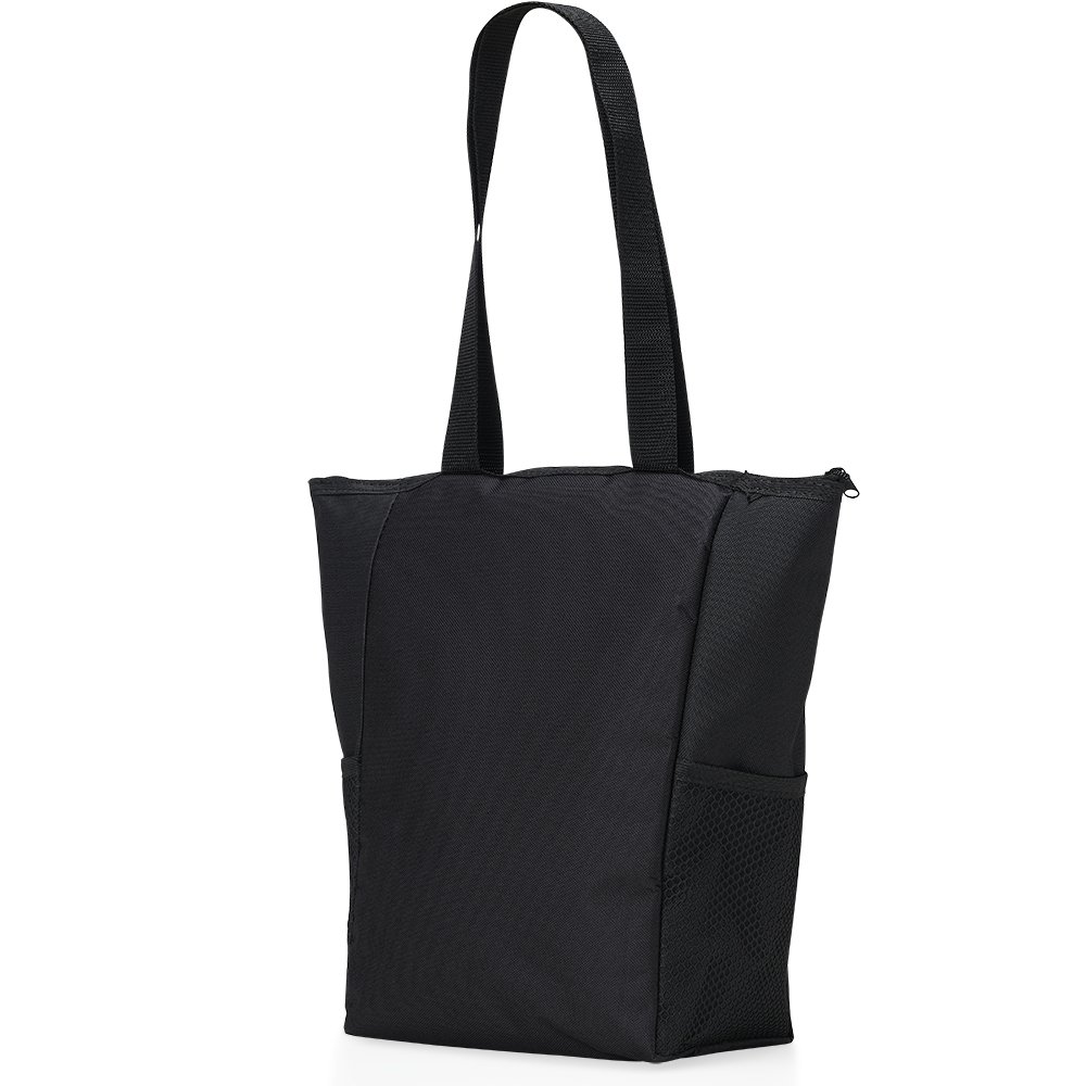 Sacola de nylon com fechamento em zíper e dois bolsos laterais externos.