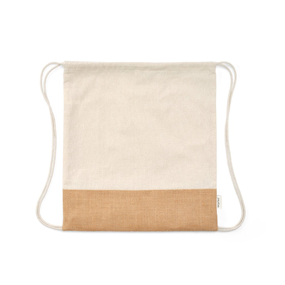 Sacola tipo mochila em 70% algodão reciclado e 30% poliéster reciclado (180 g/m²) com base em juta
