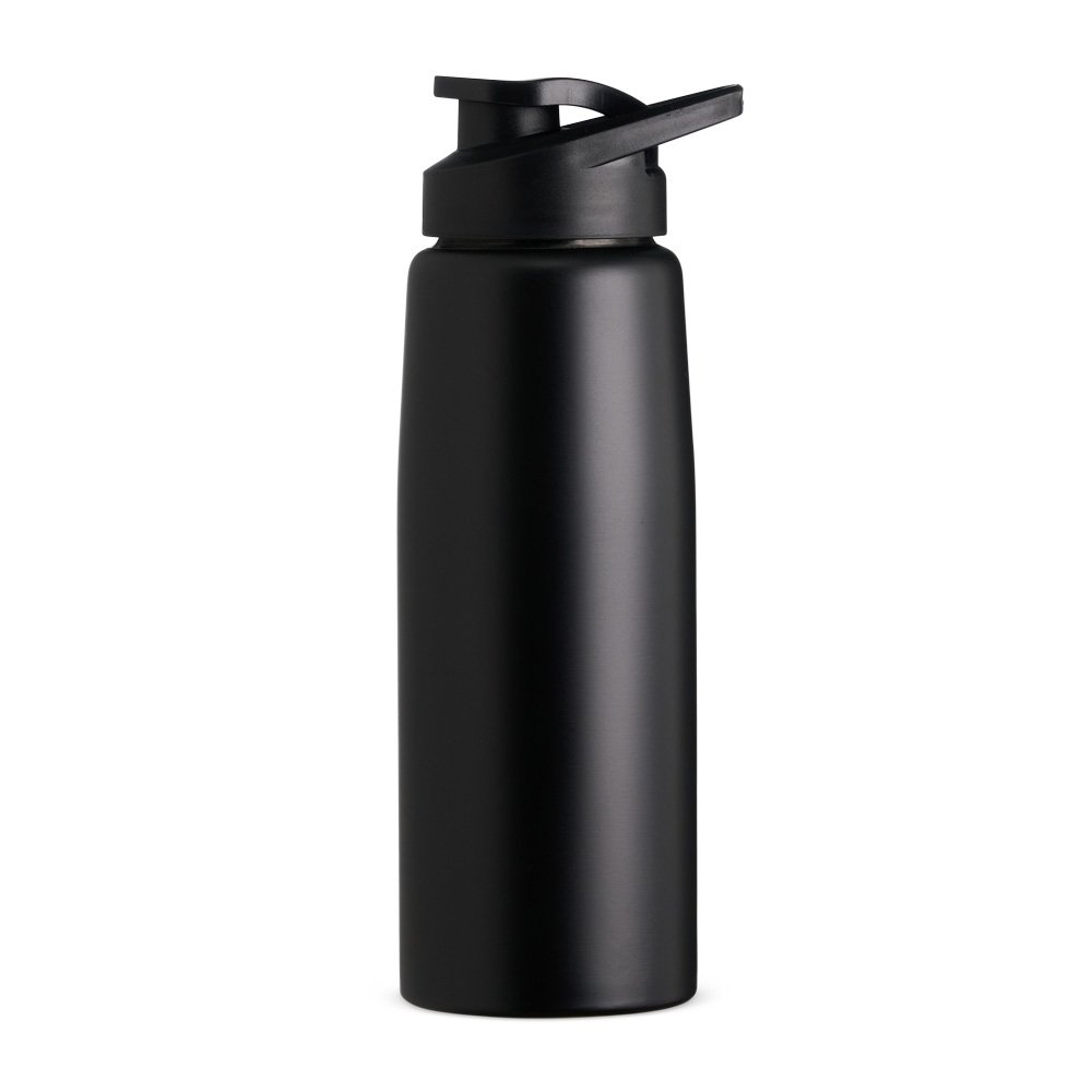 Squeeze inox de 880ml com pintura fosca. Possui tampa plástica rosqueável, alça e tampa protetora para o bocal.