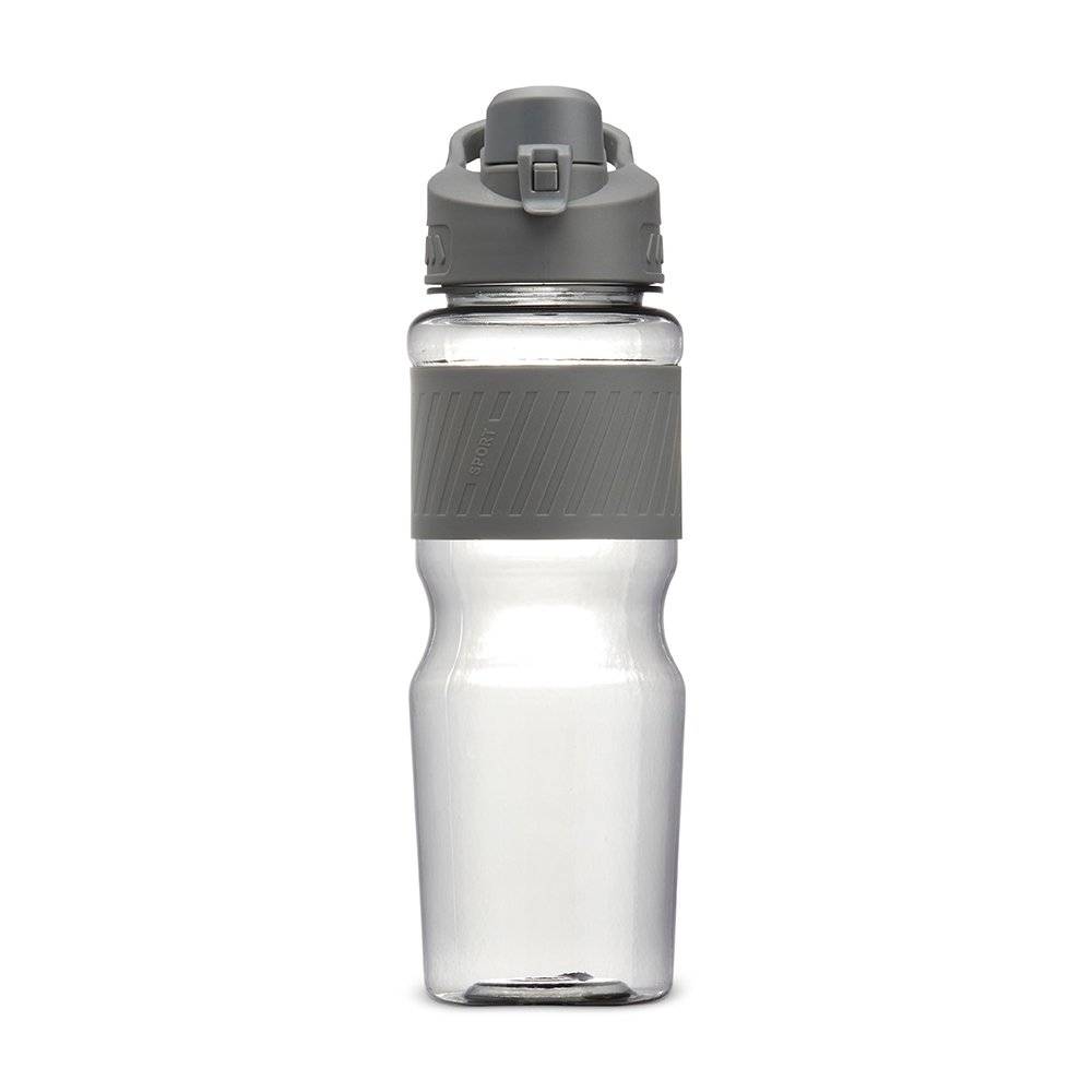 Um squeeze plástico com capacidade de 730ml. Possui luva emborrachada para facilitar sua pegada, além de uma tampa rosqueável com bocal e alça fixa para facilitar o transporte. O bocal conta ainda com uma tampa de proteção com trava de segurança.