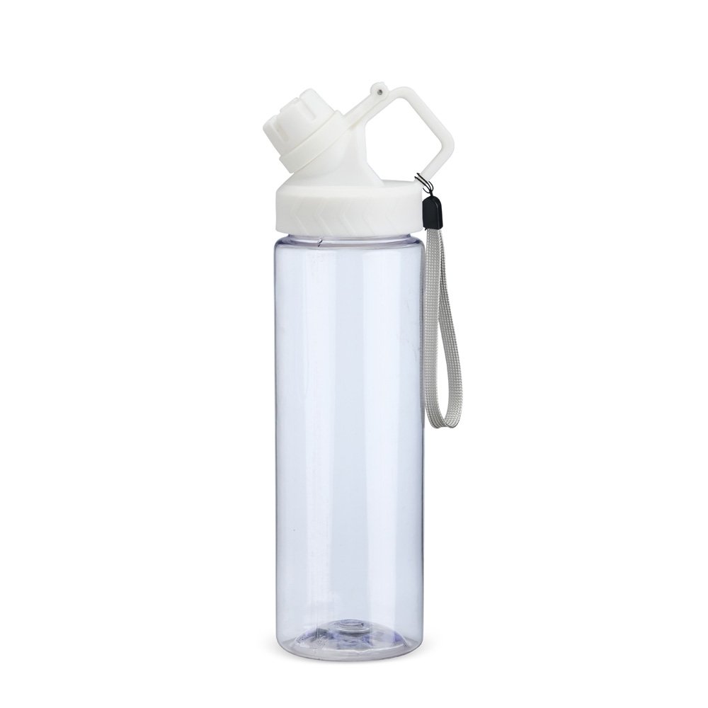 Squeeze de plástico com capacidade máxima de até 740ml. Com tampa rosqueável e articulada, o squeeze acompanha uma alça de nylon para facilitar o transporte, tornando-a uma peça prática e indispensável para uma hidratação regular para o dia a dia.