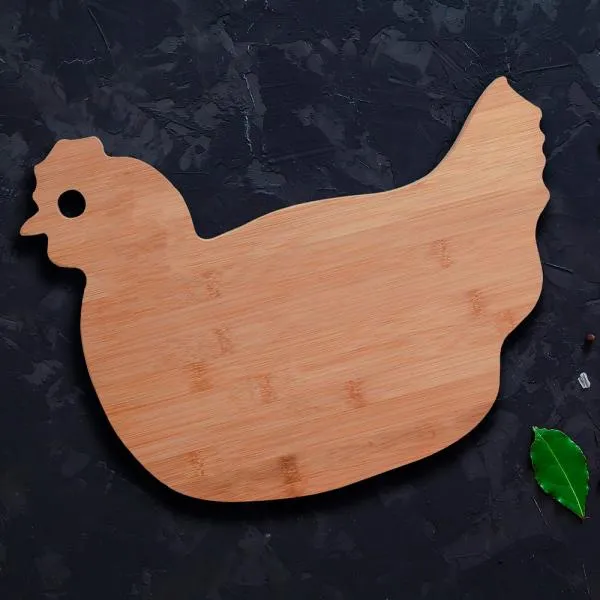 Tábua em bambu com formato de galinha
