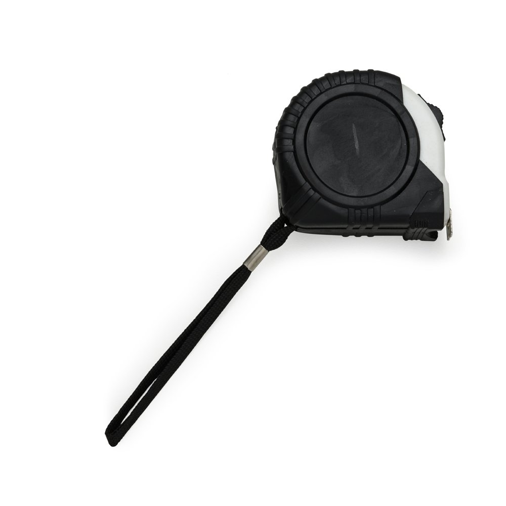 Trena de 3 metros colorida emborrachada com relevo e detalhe plástico branco. Possui trava, prendedor de metal em um dos lados e acompanha cordão de nylon.